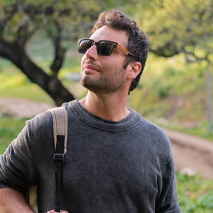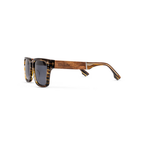 Sunglasses with a cotton-based acetate frame and natural materials combined with wooden temples