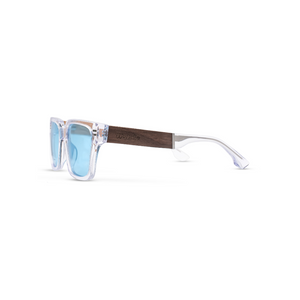 -Transparent frame with walnut temples combined with maple
